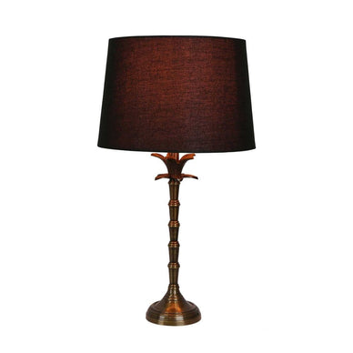 The Palm Table Lamp blends timeless elegance with a touch of tropical charm. Featuring a sculpted brass stem with palm-inspired detailing and a black linen shade, it creates a beautiful contrast of texture and tone. Perfect for adding warmth and sophistication to bedside tables or living spaces.