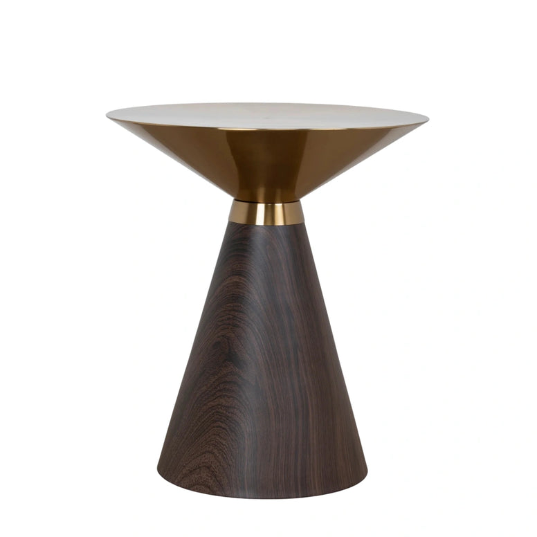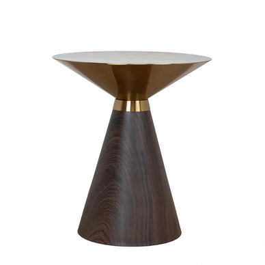 Introducing our sophisticated Samy Side Table. It's stunning features boast a durable stainless steel top in elegant gold brush colour, complemented by a walnut-coloured base. Perfect for Mid-century Modern interiors through to modern homes.