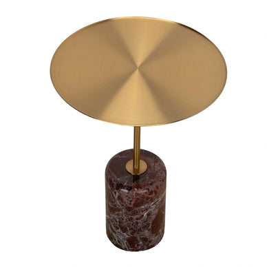 Sue Brushed Gold Side Table - Rosso Levanto Marble