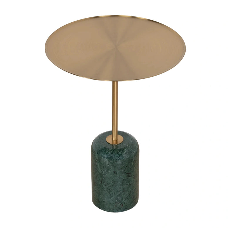 Elevate your space with this luxurious side table, featuring a brushed gold stainless steel top and a cylindrical base crafted from Green Crystal. The blend of modern and classic aesthetics makes it ideal for living or lounge areas. Designed with style and functionality in mind, it supports up to 5 kg and requires minimal assembly.